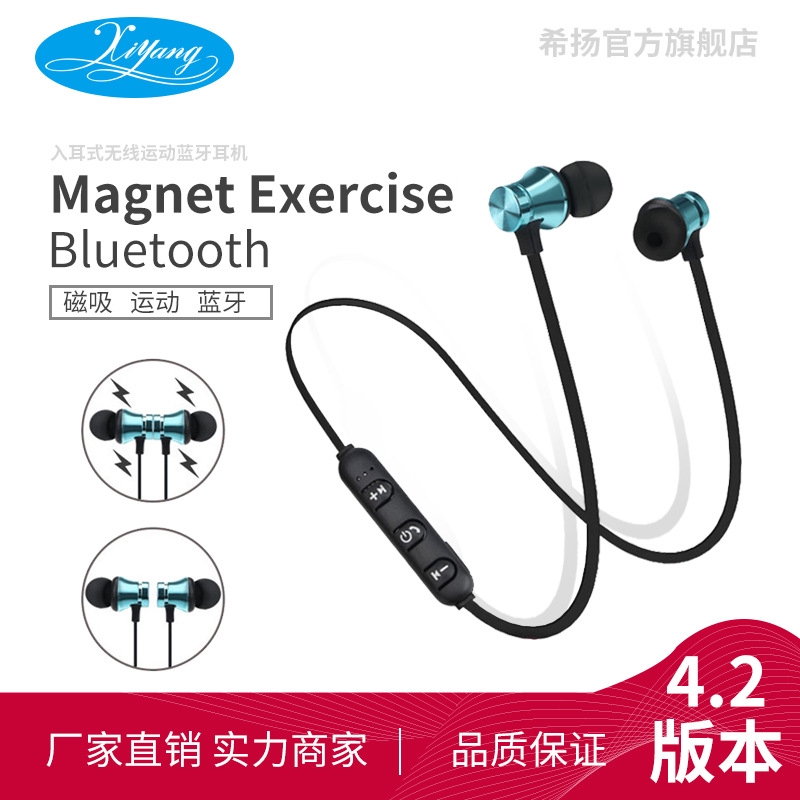 Meiyang Magnetic Wireless Bluetooth Earphone Xt 11. Built-in magnets let you attach the two headphones together when not using, and wear like a necklace around your neck, a convenient way to carry around when you don't need them. Built-in magnets enable the earplugs to be magnetically attached to each other back-to-back, which prevents the headphone from falling off while you place it round the neck.